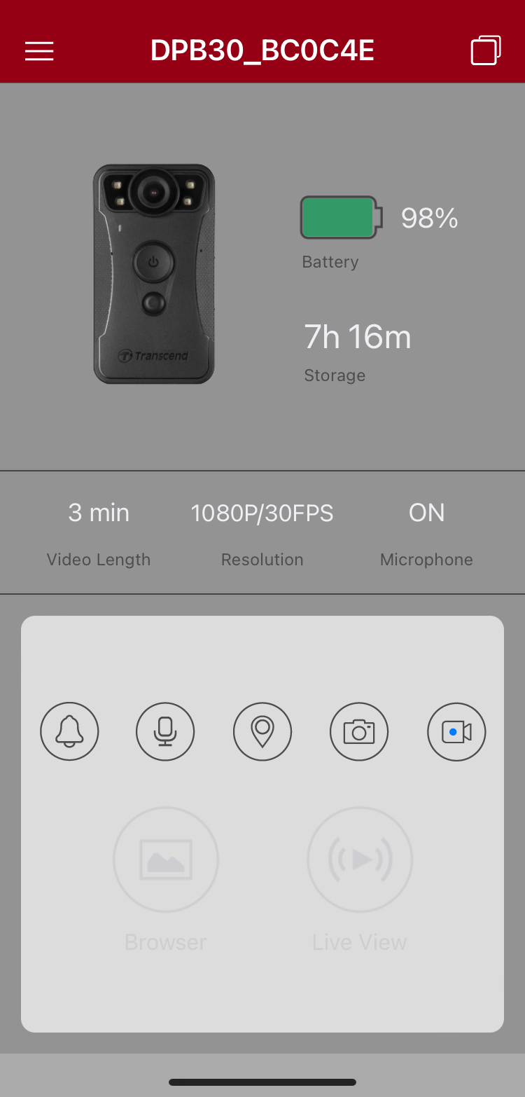 Haga clic a su dispositivo DrivePro™ Body que aparece en la aplicación.
