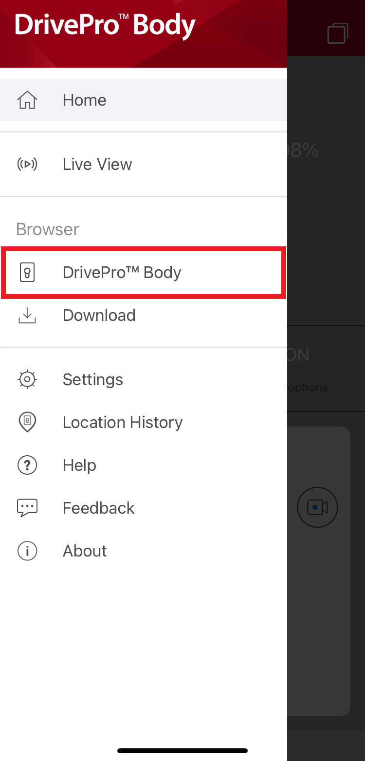 Haz clic en el ícono ☰, luego elige DrivePro™ Body en el menú.