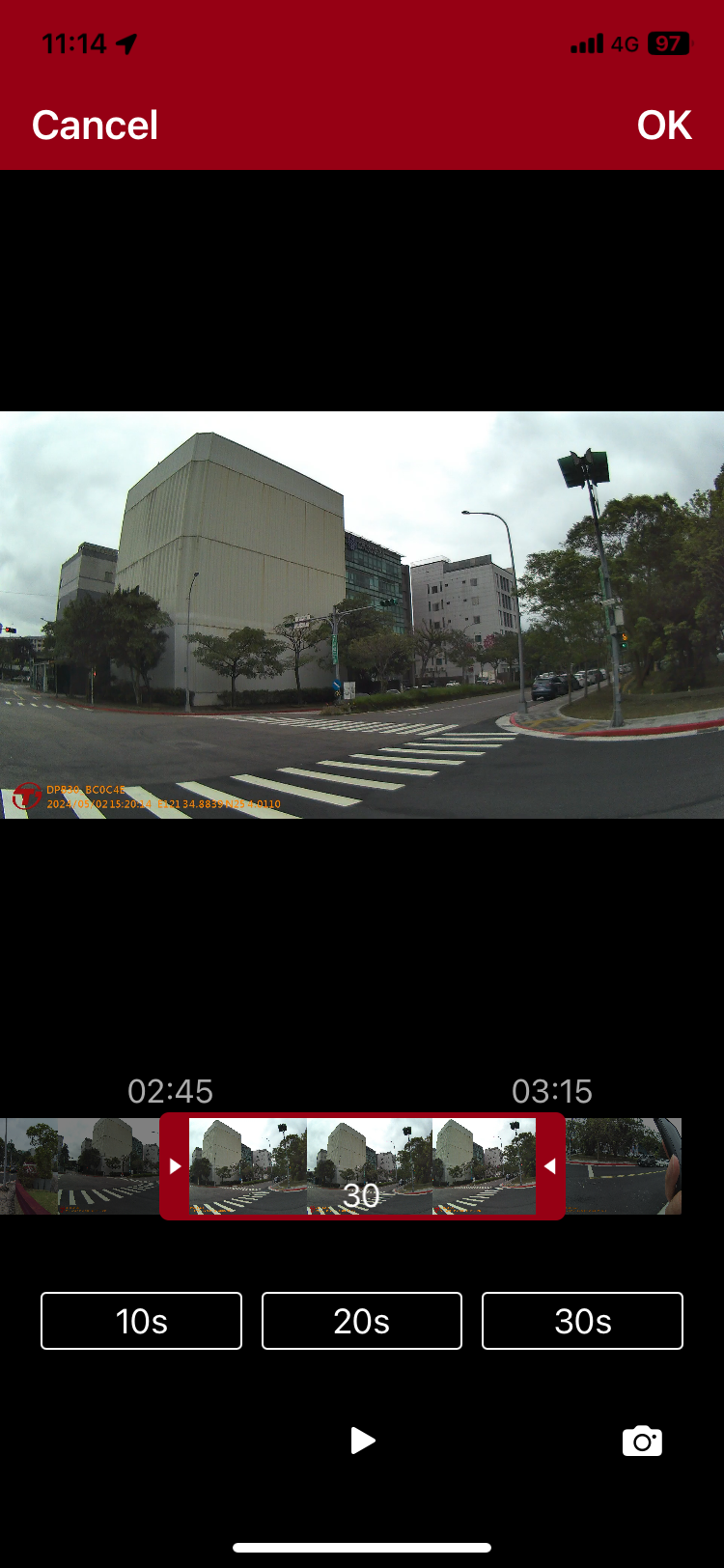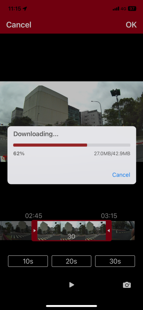 Recorte el video a 10, 20 o 30 segundos para descargarlo, o ajuste manualmente su duración arrastrando el borde del clip seleccionado resaltado en rojo.