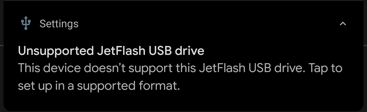 如果显示以下错误,请检查USB设备的文件系统。(Android操作系统本身支持FAT32和EXT4)