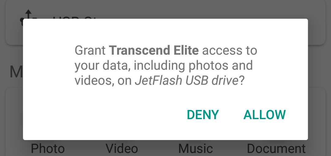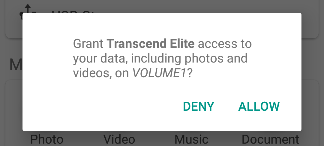允许Transcend Elite app应用访问您的SD卡或USB设备